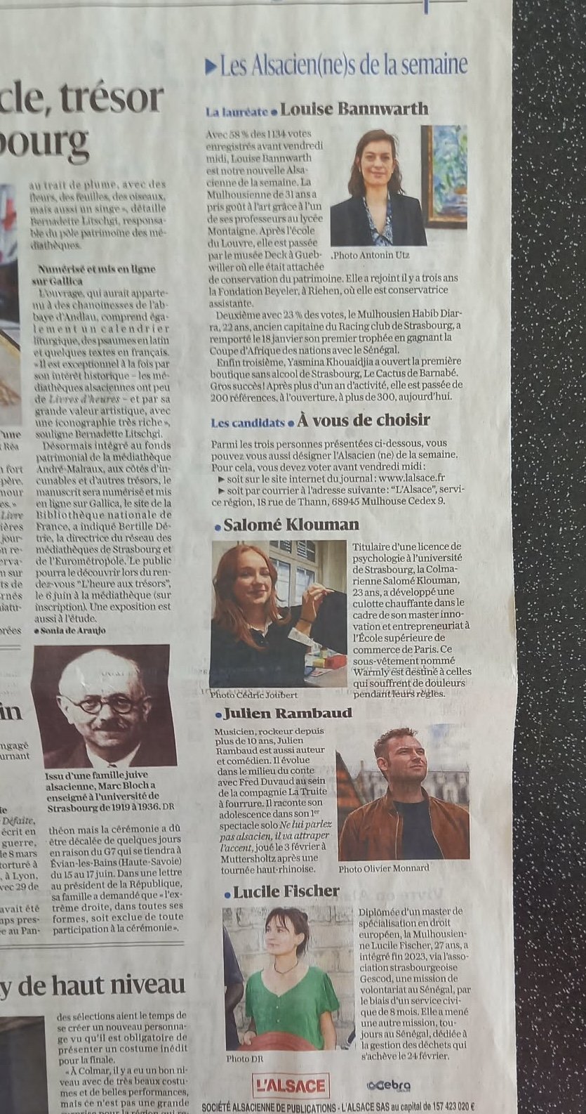 Et j’ai aussi eu le plaisir d’être parmi les Alsacien(nes) de la semaine !