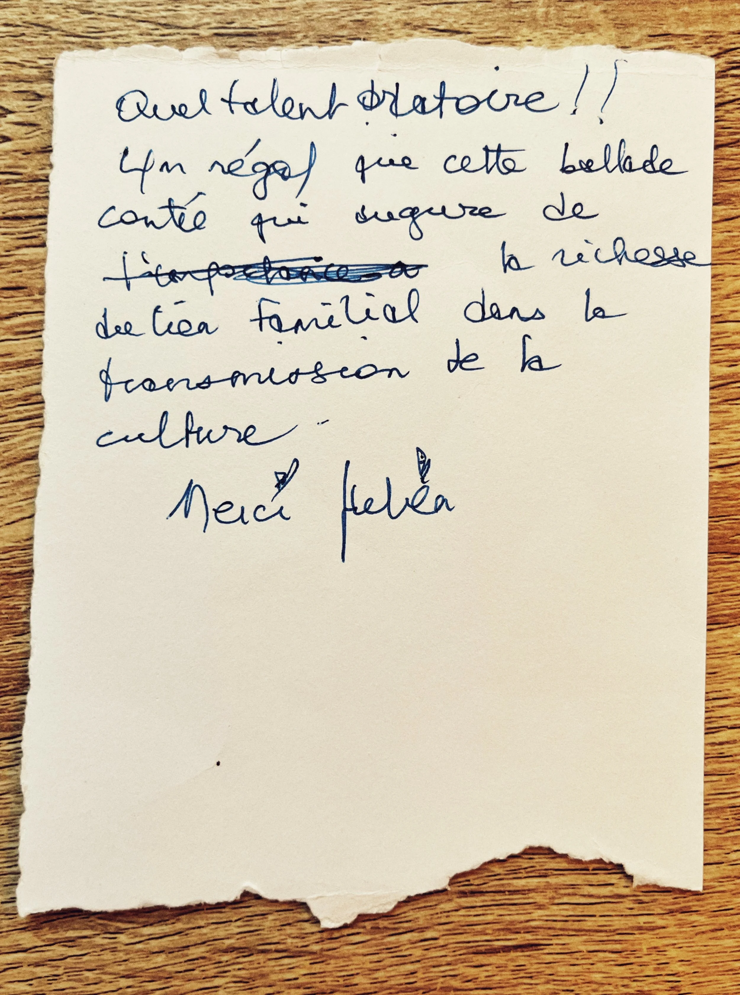 “Quel talent oratoire !! Un régal que cette balade contée qui augure de la richesse familiale dans la transmission de la culture. Merci Julien”