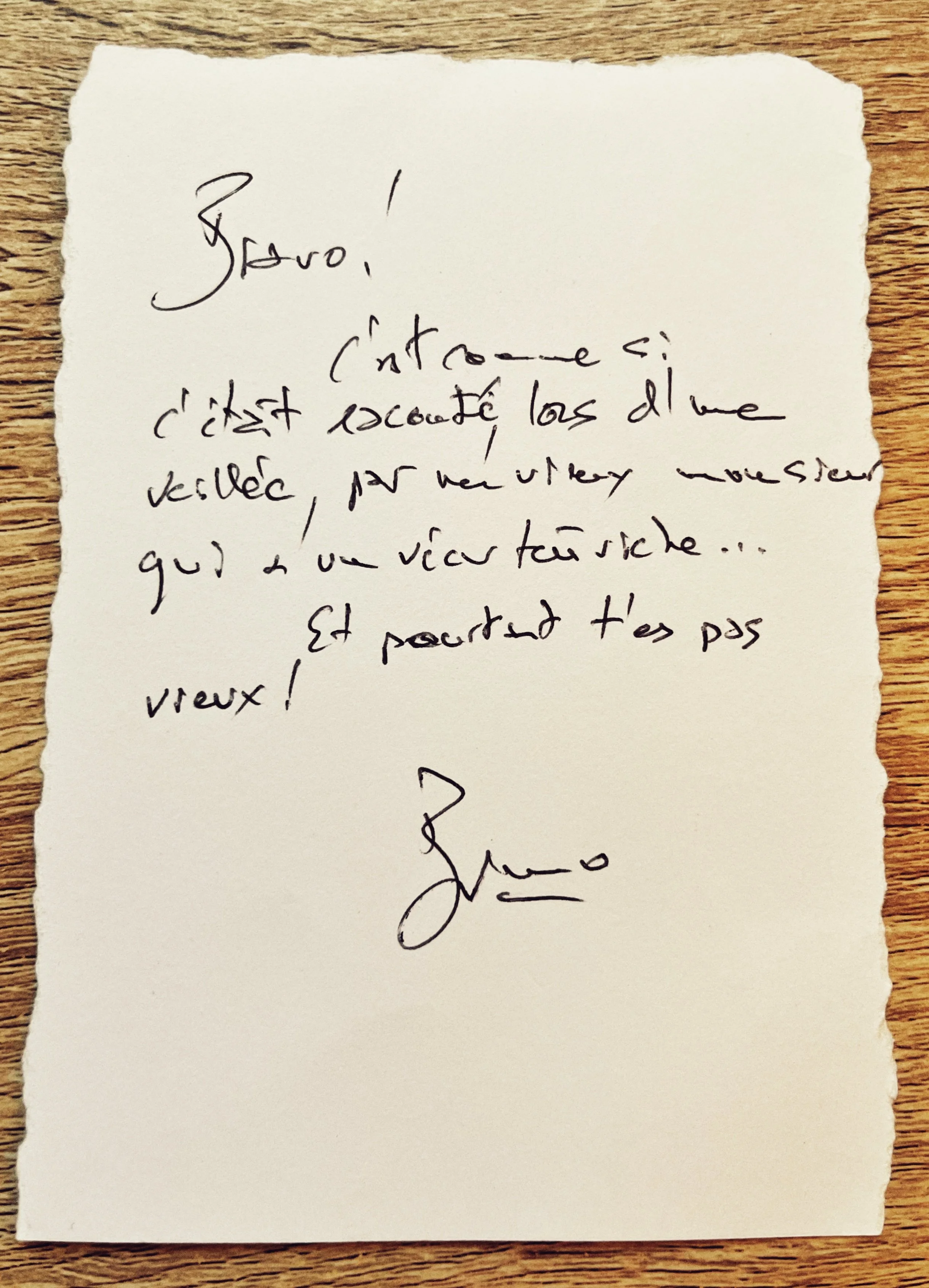 “Bravo ! C’est comme si c’était raconté lors d’une veillée, par un vieux monsieur qui a un vécu très riche… Et pourtant t’es pas vieux !”