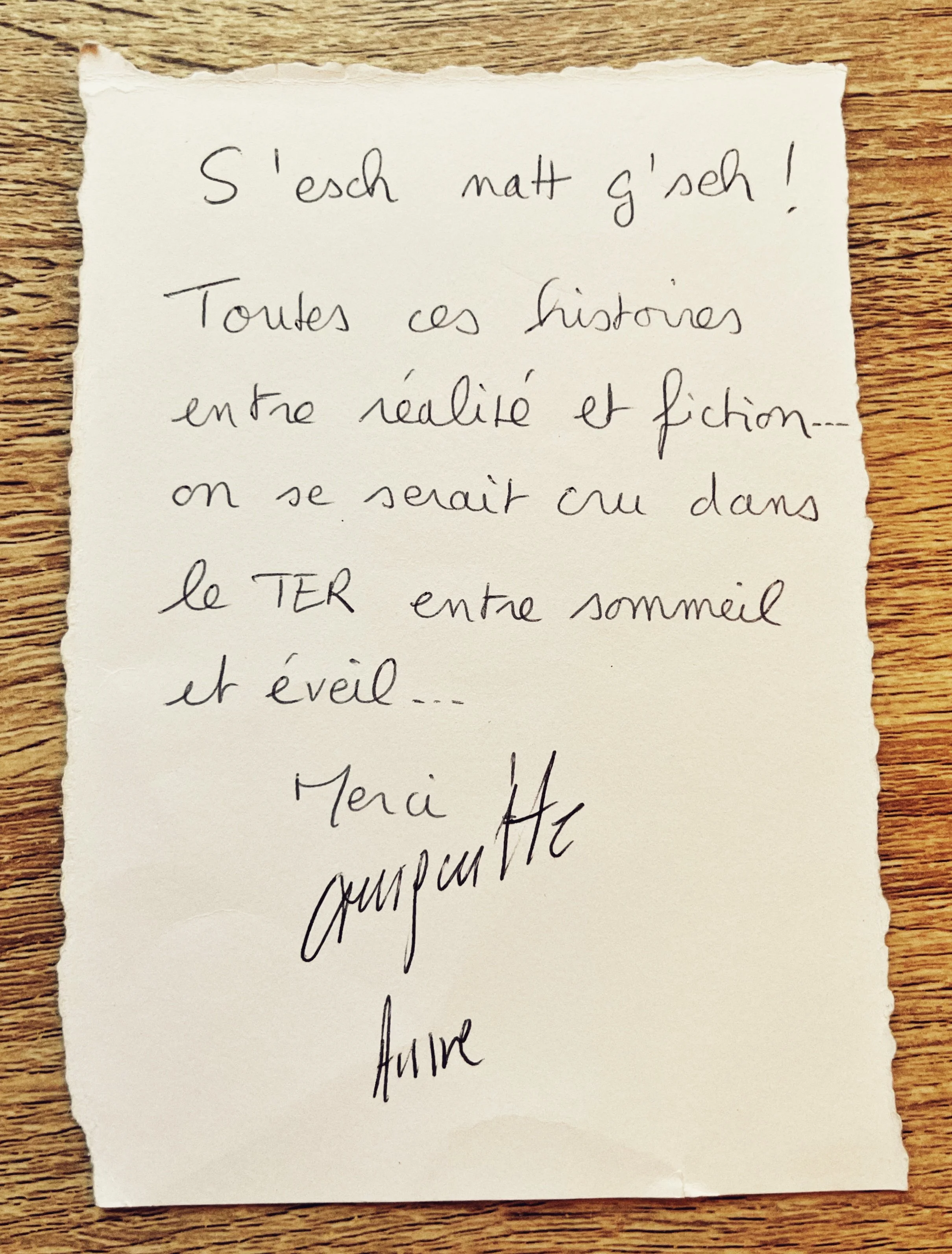 Toutes ces histoires entre réalité et fiction… On se serait cru dans le TER entre sommeil et éveil… Merci”