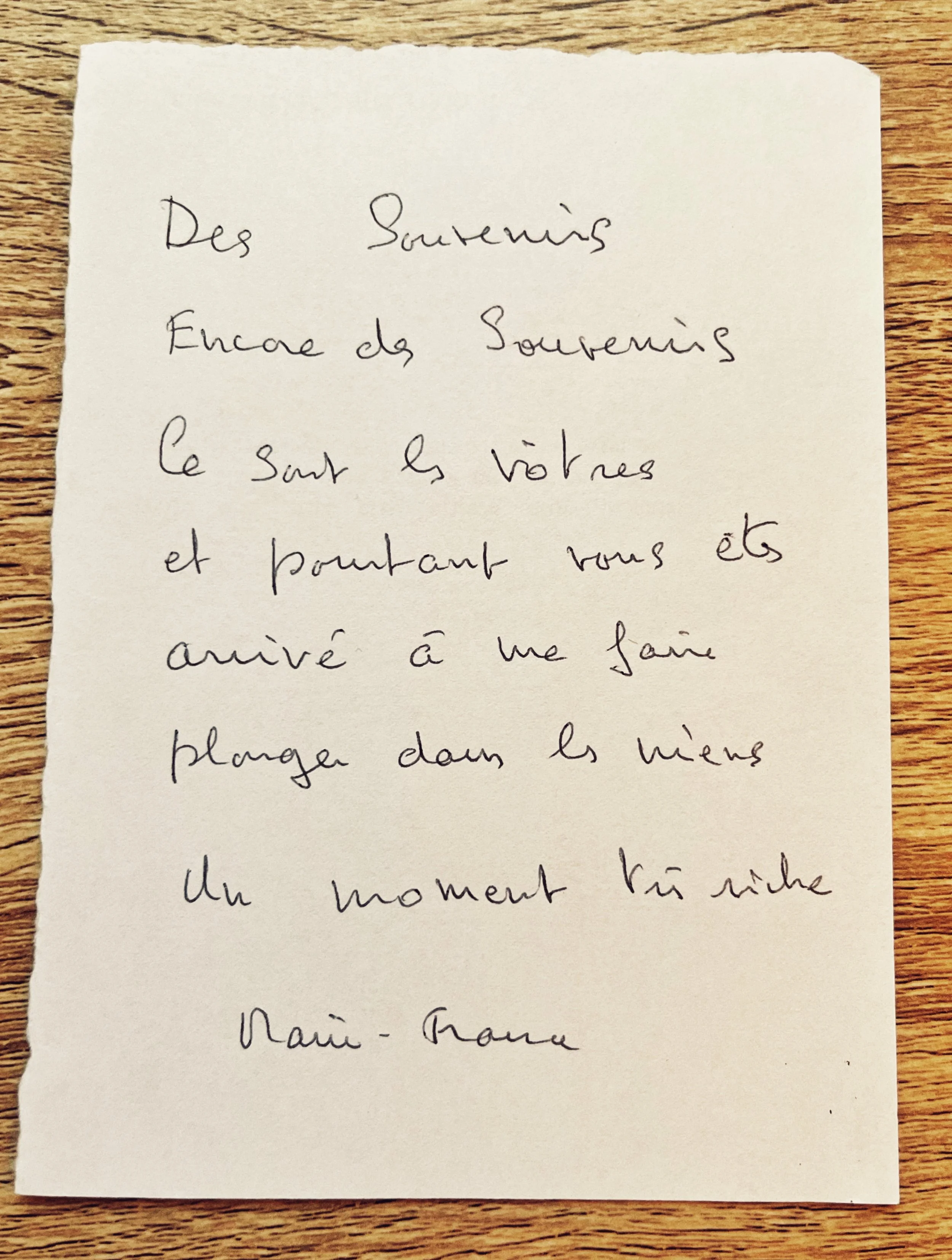 “Des souvenirs encore des souvenirs. Ce sont les vôtres et pourtant vous êtes arrivé à me faire plonger dans les miens. Un moment très riche”